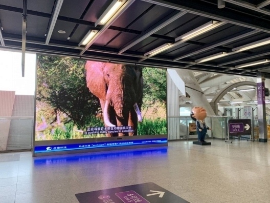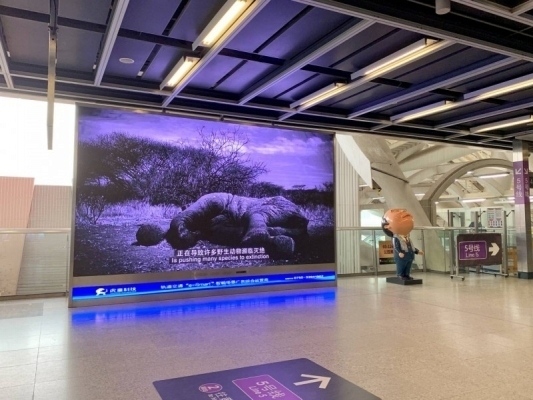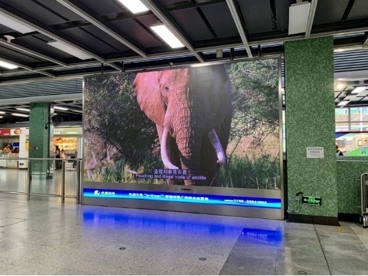 “没有买卖,就没有杀害。”深圳地铁中轴大线4号线内,虎童科技的超级智能大屏传出铿锵有力的口号,将濒危野生动物所处困境与保护的认知与保护生态环境的意识,以震撼影像之力传播发散到全城。