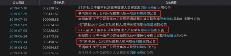 大连天宝绿色食品股份有限公司(ST天宝)于2019年7月5日在信息披露指定媒体《证券时报》和巨潮资讯网上披露了《关于董事长及高级管理人员被采取强制措施的公告》。