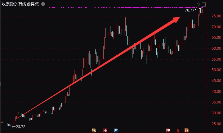 即便业绩爆雷,农业股也照涨不顾!牧原股份半年度业绩预告显示,上半年亏损1.45亿至1.65亿。然而,牧原股份股价丝毫没有回头的意思,近期更是创出了历史新高,成为七月份以来涨幅最凶的农业股,在整个七月份,牧原股份上涨了30%。