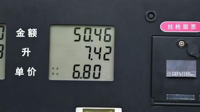加油机显示加了7.42L汽油,油费一共50.46元,我们来算一下它的实际油耗:昂科威表显行驶里程为104.0km,实际加油量为7.42L,于是用7.42÷104×100,算出来的平均油耗为7.1L/100km。