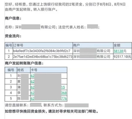 根据相关银行和支付机构的回函,受害人资金在易宝支付条线的流向得以还原,即易宝支付——上饶银行——广州商品清算中心(下称“广清所”)——个人银行卡。