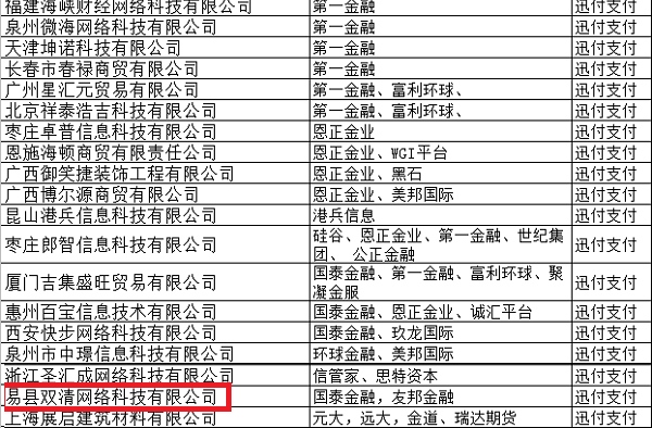 在双清科技案中,记者调查发现,同一批受害人在非法交易平台的入金除了进入环迅支付,还进入了另外两家第三方支付机构易宝支付和银盈通。
