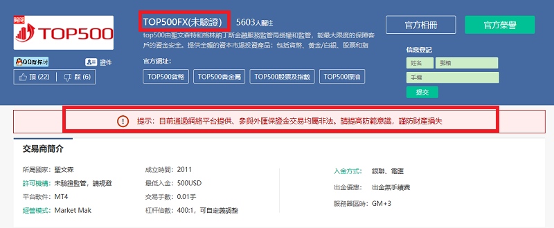 据媒体报道,为了逃避监管,该犯罪团伙不断变换平台名称,先后成立过“Top500”、“第一金融”、“国泰金融”、“友邦金融"、“金边公正交易所”等,他们声称受到美国全国期货协会(NFA)监管,但实际上不具备任何金融业务资质。