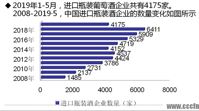 中国食品土畜进出口商会酒类进出口商分会秘书长王旭伟介绍,根据对国内进口酒商的调查发现,国内市场正在进入存量市场的争夺,这也导致酒商之间的分化正在加剧,一部分企业逆势增长,而大部分企业经营变得困难。数据显示,2018年国内有6411家瓶装葡萄酒进口企业,而到2019年前5个月,这一数字已经锐减到4175家,减少了35%。