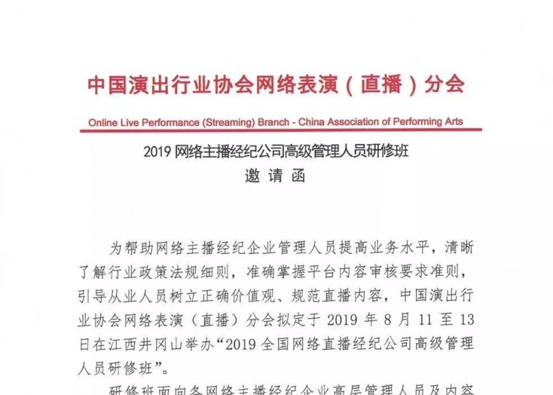 也许是巧合,乔碧萝事件发生后,把乔碧萝加入封禁黑名单的行业协会,准备在井冈山举办主播经纪公司高管研修班,意在“树立正确价值观,规范直播内容”。