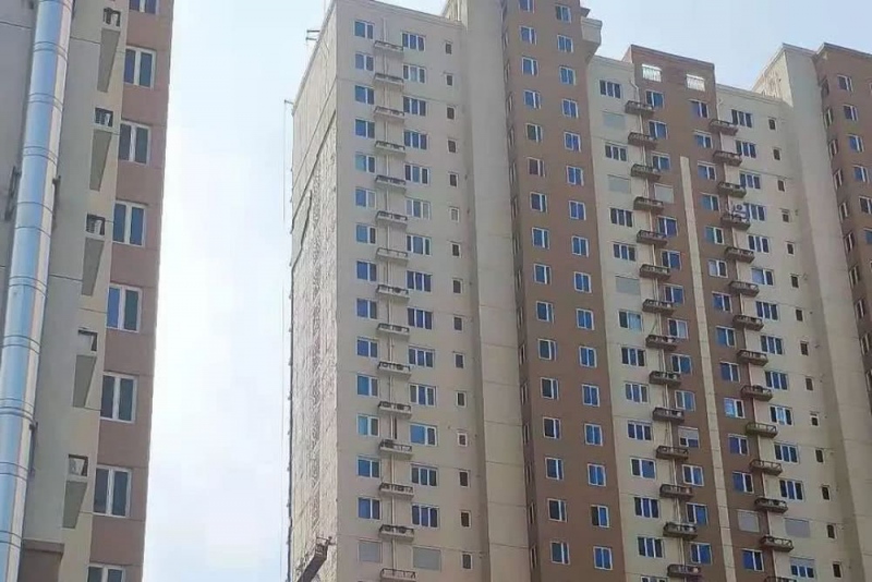 AI财经社在现场看到,3号楼的外墙体中,自7楼至26楼的外墙体均有脱落,占据总楼高一大半,远处望去,一片片斑驳的灰色墙体露出,格外乍眼。不过,与其相邻的1号楼和2号楼却没有受损痕迹。