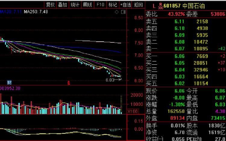 8月15日,中石油开盘报6.06元,盘中快速下挫,创下六年新低6.03元。上市12年来,市值蒸腾7.2万亿,超越百万股民挑选黯然离场。
