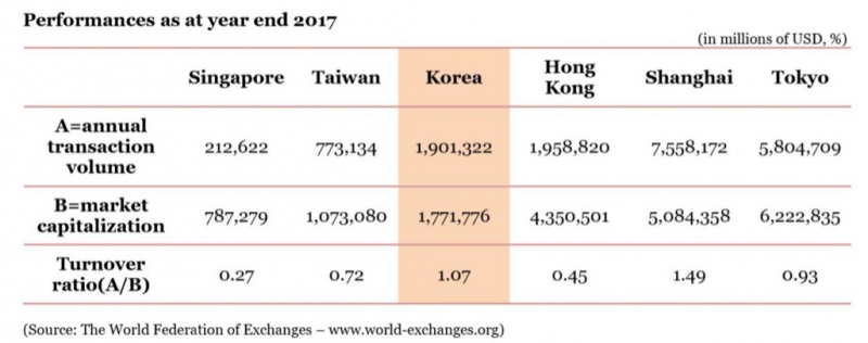 2017年东亚各股市,韩国股市买卖活泼程度仅次于A股,成交量与港股相似。数据来历:国际证券买卖所联合会