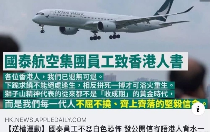 昨日,港媒刊登了一份疑似国泰航空集团职工宣布的“致香港人书”,里边充满了煽动性言辞,引起了巨大争议。