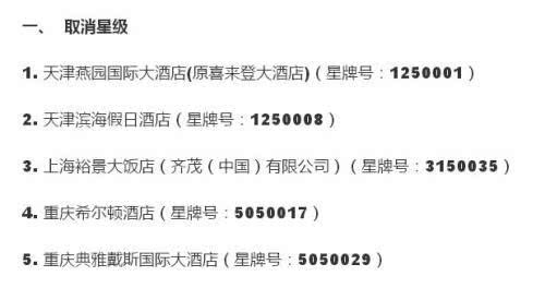 中新网客户端北京8月19日电(记者 李金磊)8月19日,全国旅行星级饭馆鉴定委员会发布公告指出,在近期文明和旅行部安排展开的暗访查看中发现,部分五星级饭馆的卫生和消防安全问题严峻,服务不标准问题杰出,决议对5家饭馆予以撤销五星级旅行饭馆资历的处理,分别是天津燕园世界大酒店、天津沿海假日酒店、上海裕景大饭馆、重庆希尔顿酒店、重庆高雅戴斯世界大酒店,对11家饭馆予以期限整改12个月的处理。