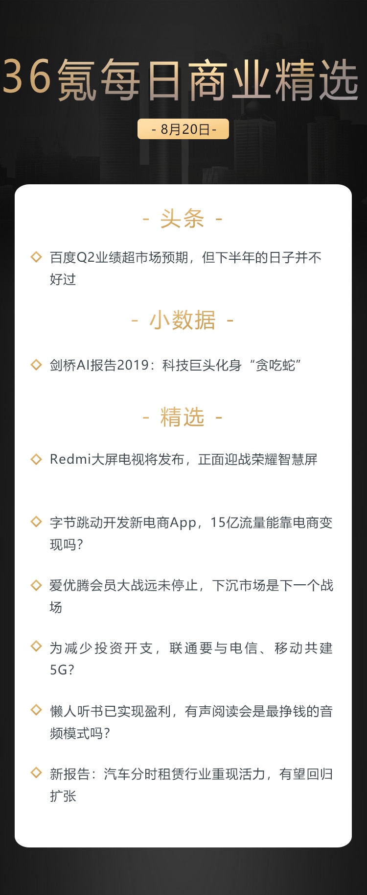 本文来自36氪付费栏目《36氪每日商业精选》——8月20日
