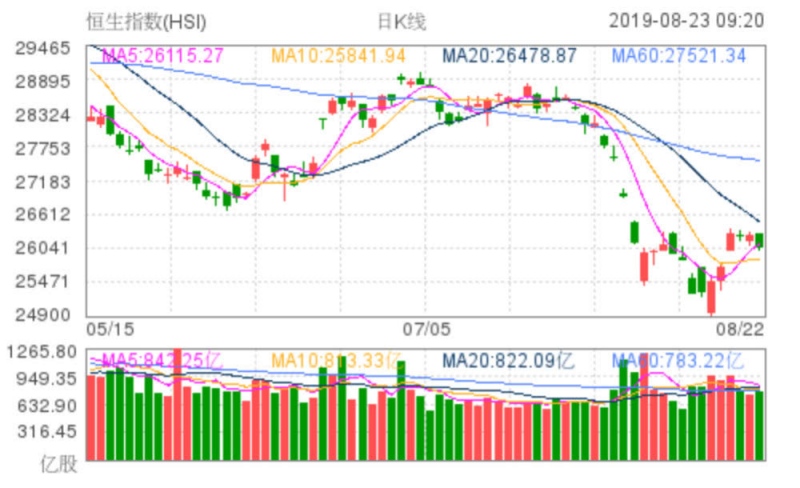 腾讯证券8月23日讯,恒生指数今早高开0.04%,报26057.88点;国企指数低开0.04%,报10118.93点;红筹指数低开0.16%,报4188.37点。美团点评(3690.HK)今天发布中期成绩,今早低开1.36%;我国人寿(2628.HK)中期股东应占溢利同比添加128.9%,今早高开1.1%;友邦保险(1299.HK)中期净利同比添加132%,今早高开1.44%;新城开展控股(1030.HK)今天发布中期成绩,今早高开0.47%。
