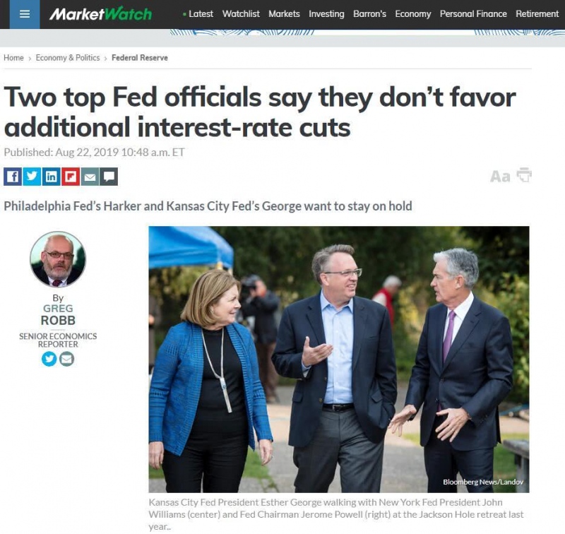 Marketwatch头条| 美联储两名官员标明:他们不赞成进一步降息