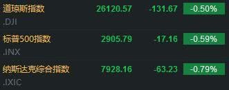 音讯放出后一个多小时,美股开盘,三大股指全线低开,道琼斯指数跌0.48%,标普500指数跌0.46%,纳斯达克归纳指数跌0.55%。