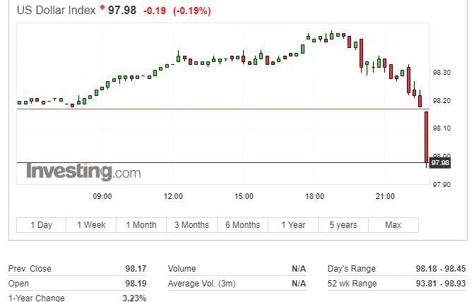 美元指数相同扶摇直上。鲍威尔说话之初一度走强,日内涨幅扩展至0.2%,交投98.33一线。鲍威尔说话50分钟左右,美元指数短线跳水并跌破98整数关口,日内转跌且跌幅扩展至0.4%。美元兑日元也改写一周低点至106.10,日内跌超0.25%。