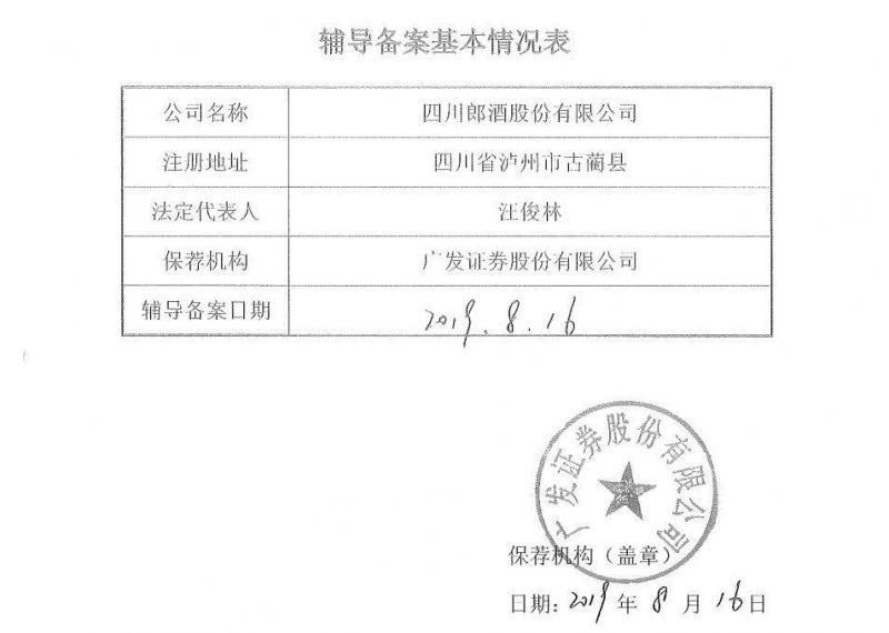 郎酒股份教导存案基本情况表。来历:四川证监局官网