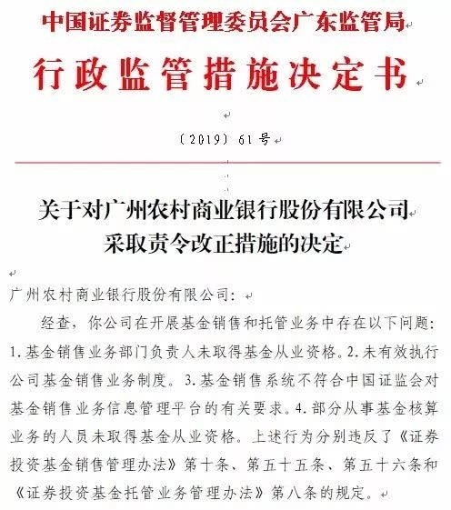 相关资料显现,广州农商银行在打开基金出售和保管事务中存在四个问题: