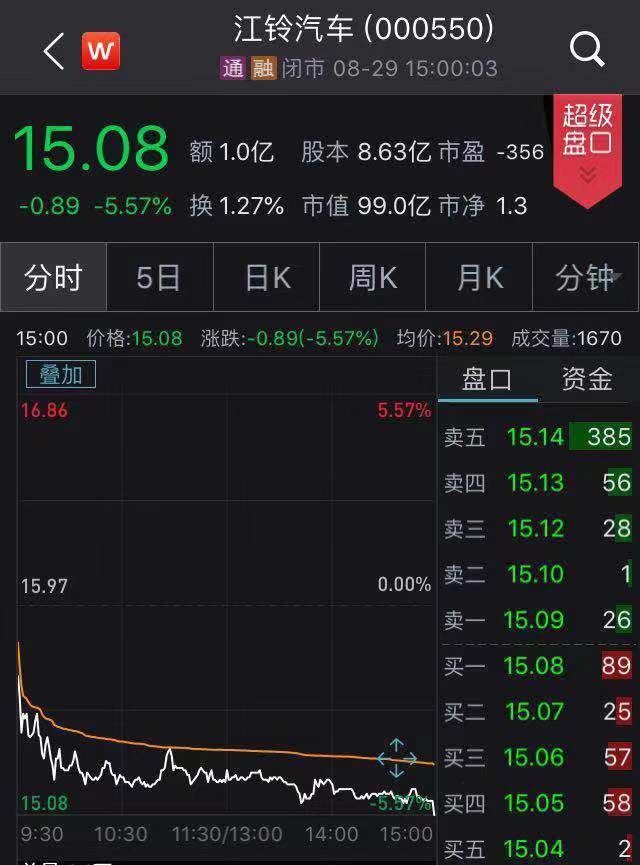 江铃轿车今天股价走势 截图来历:wind