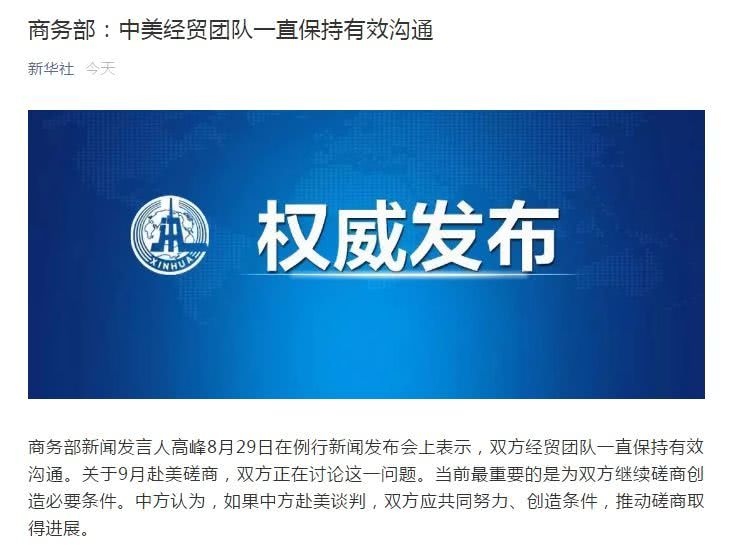 顶峰表明,关于9月份赴美商量,两边正在评论这个问题。假如有进一步状况,将会及时发布,当时最重要的是为两边持续商量发明必要条件。中方以为,假如中方赴美商洽,两边应该共同努力、发明条件,推进商量获得展开。