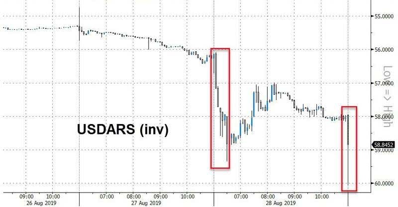 自8月11日意外的初选成果根本阻断了阿根廷总统马克里在10月连任之路后,阿根廷股汇债三市便堕入动乱。周三阿根廷财政部宣告了数百亿美元债款“重新安排”的方案,更是加快了阿根廷辅币比索和该国债券暴降的脚步。但债款重新安排究竟存在主权债款终究违约的危险,一旦违约,将是阿根廷这一南美洲第三大经济体自1816年独立以来的第九次违约。摩根大通新式商场债券指数显现,衡量违约危险的阿根廷国债与同期限美债收益率息差飙升177个基点,至2249点,挨近2005年以来高位。