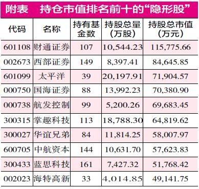 (原标题:公募基金“隐形股”全部曝光 成绩左右相关标的命运浮沉)