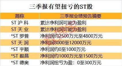 7只ST股三季报估计扭亏