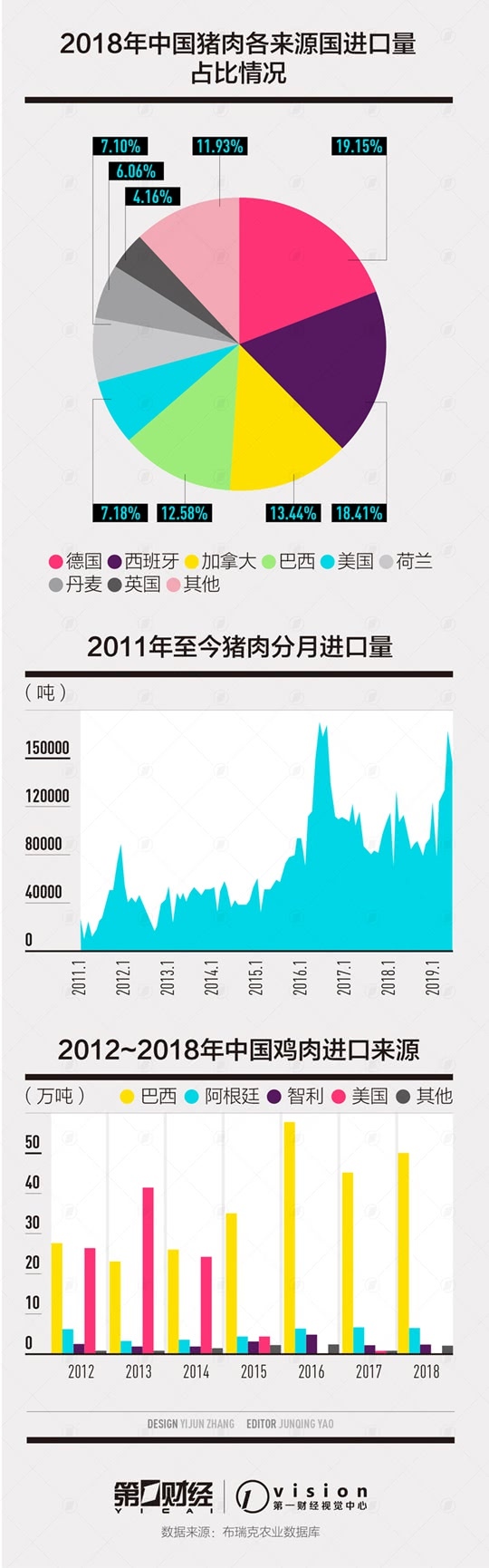 2017年之后,特别是2018年,我国从巴西进口猪肉的数量开端爆发性添加。海关数据显现,2018年,我国进口巴西猪肉达15万吨,占进口总量的12.5%。