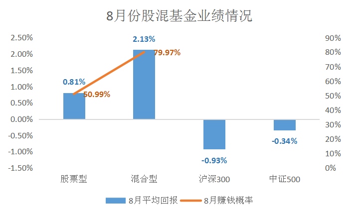 8月份刚过去不久,出资国内市场的公募基金月度成绩也已悉数出炉。计算显现,虽然8月份A股大盘跌落,但股票型基金、混合型基金均匀收益率均为正。