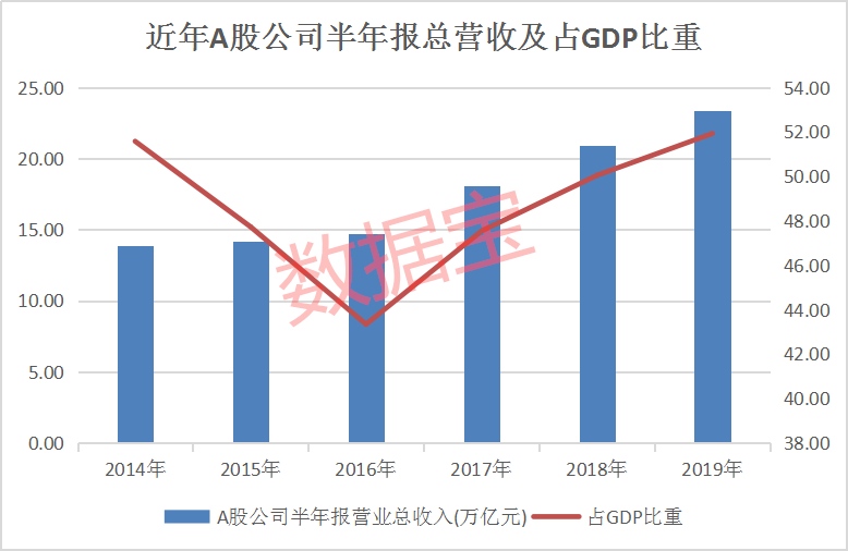 证券时报·数据宝计算闪现,不含本年下半年上市的公司,A股半年度营收23.41万亿,与上半年我国GDP总量45.1万亿比较,占到51.9%,营收和净利润别离同比增加9.32%、6.54%,扣非净利润同比增加6.04%,全体出售毛利率19.4%,根本坚持稳定。