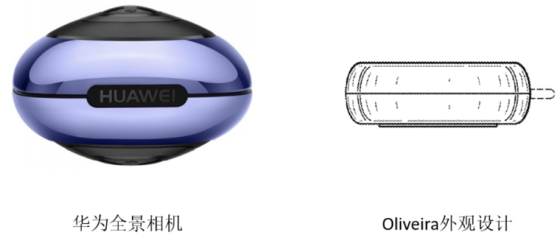 附:Oliveira外观设计专利和华为Envizion360摄像头比照,两者显着不同:
