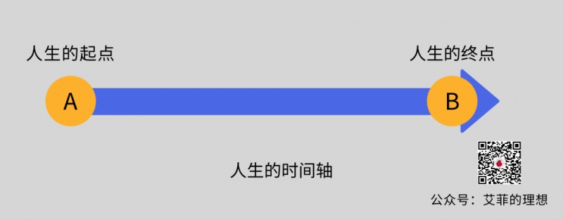所以,就有了下面这幅图,A是人生的起点,B是人生的结尾,每个人从出世之日起,就一向在走向人生的结尾。