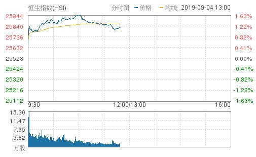 腾讯证券9月4日讯,到午间收盘,恒生指数涨1.18%,报25830.19点;国企指数涨1.13%,报10149.22点;红筹指数涨0.58%,报4137.35点。大市成交额424.99亿港元。教育股今早遍及反弹,睿见教育(6068.HK)半日涨8.74%;美图公司(1357.HK)盘中最低跌2.78%,创上市新低1.75港元;波司登(3998.HK)盘中最高涨8.52%主意2.93港元,创近九年新高。