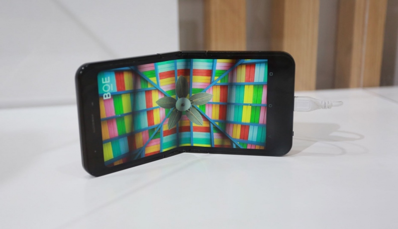 在8月底的智博会上发布的京东方折叠屏,三星第二款折叠手机的姿态跟它应该有点相似。图片来历:IC Photo