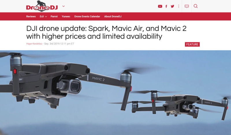 The Verge网站称,假如想在该公司的美国分店购买某些产品,你会发现大疆Mavic 2无人机的价格上涨了约13%,略低于唐纳德·特朗普(Donald Trump)总统上月下旬宣告的加征15%的数字,该关税办法在上周末收效。