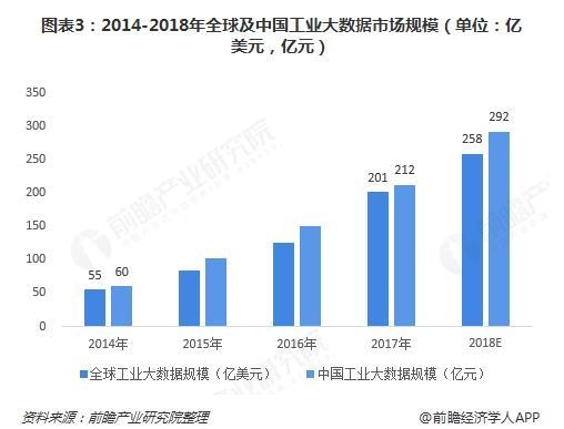 前瞻工业研讨院的一份陈述指出,眼下全球工业大数据的规划不断添加。2017年全球工业大数据的商场规划为201亿美元,当年全球大数据商场规划为394亿元,工业大数据占全球大数据总规划超越50%。