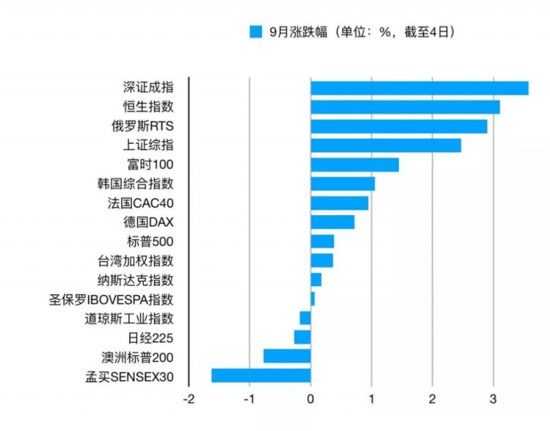 9月的最初,尽管欧美股市不太给力,但中国商场(A股+港股)却精准地验证了这句谚语,成为全球股市的领头羊。Wind数据显现,即使不算上今日上午的大涨,A股也是9月全球商场的佼佼者。深证成指雄踞全球股指区间涨幅榜榜首。