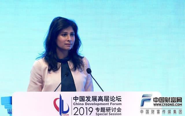 国际货币基金组织首席经济学家吉塔·戈皮纳特讲话。我国财富网 图