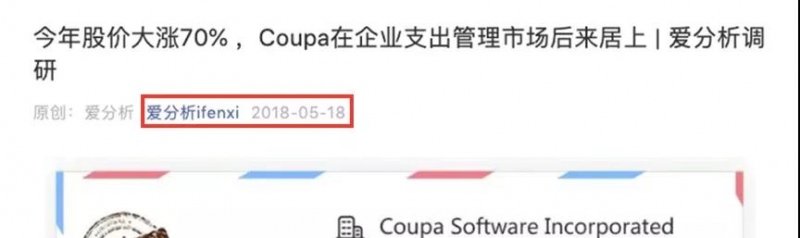 近来,爱剖析发现天风证券于2018年6月15日发布的题为《海外SAAS企业财报系列—云服务细分范畴独角兽》的证券研讨陈述,与爱剖析2018年5月18日发布的原创陈述《本年股价大涨70% ,Coupa在企业开销办理商场后发先至》高度相同。