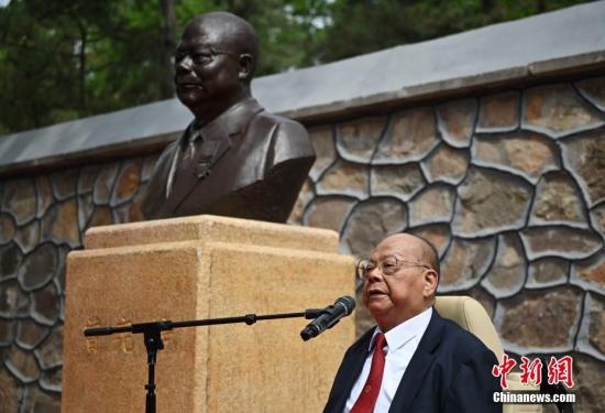 材料图:5月24日,香港闻名企业家曾宪梓雕像揭幕仪式在北京圆明园遗址公园三园接壤举办。图为曾宪梓讲话。 中新社记者 崔楠 摄