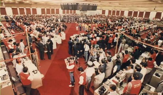 四所兼并。1986年3月27日,香港证券按买卖所、远东买卖所、金银证券买卖所以及九龙买卖所四间买卖所歇业,4月2日由四所兼并而成的香港联合买卖所(联交所)正式开业。图片来历:香港买卖所