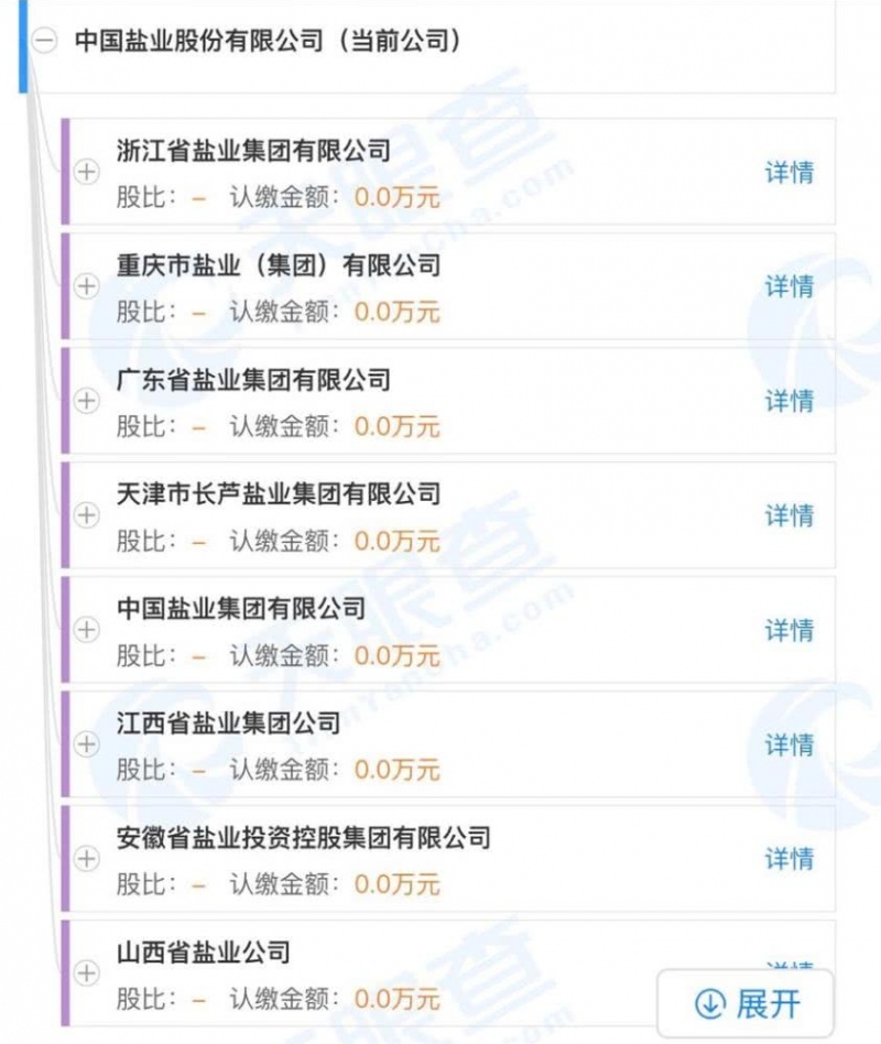 这13家出资者包含国新控股、广东省盐业集团、兴业银行、建信信任、北京川发出资办理有限公司、广西北部湾股权出资基金、茅台建信资管、太钢出资、温氏出资、海宁鑫鸿、重庆化医控股、广西盐业、石羊农业控股,不过到现在中盐方面没有发布各出资者的详细持股明细。