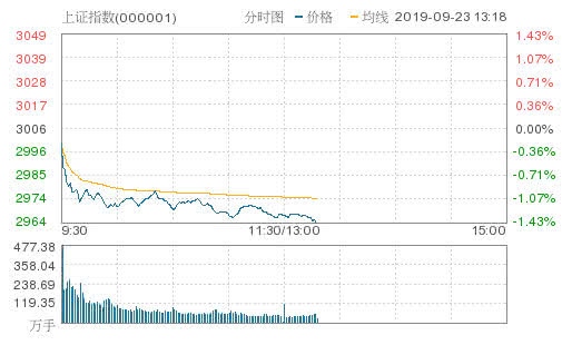 到发稿,沪指报2963.80点,跌幅1.42%,成交量1315.13亿元;深成指报9716.09点,跌幅1.67%,成交量2098.55亿元;创业板指报1673.85点,跌幅1.83%;上证50指数报2919.45点,跌幅1.48%。