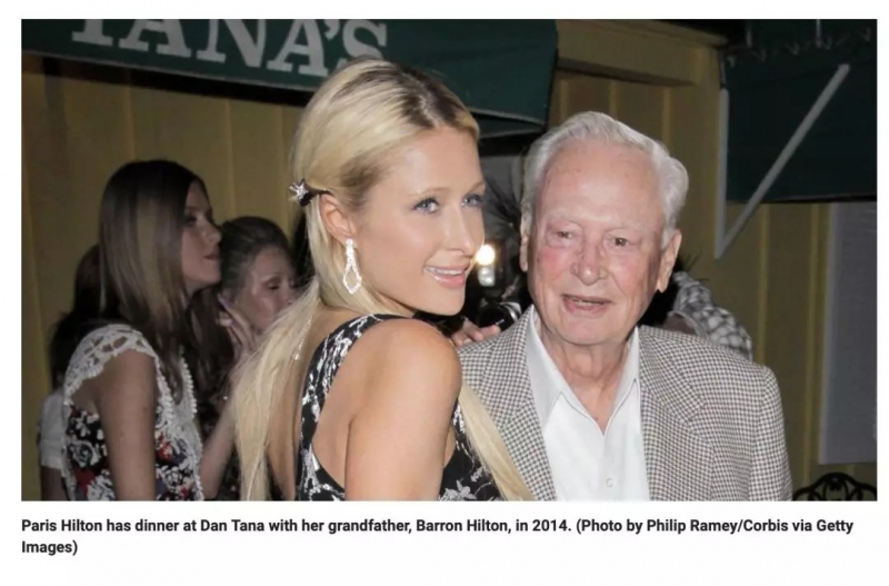 帕丽斯·希尔顿与祖父巴伦·希尔顿在2014年的合影(图片来历:福克斯新闻报导截图)