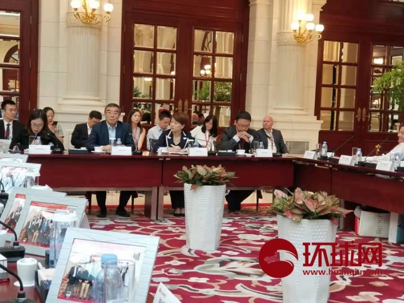 华为董事长梁华(前排左二)24日下午在深圳华为总部与来参与举世时报社与德国博世基金会主办的第三届“中德美媒体论坛”的中德美部分媒体负责人进行座谈。谢戎彬/摄