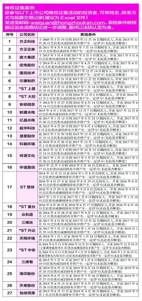 依据上述已查实的违规事项,依据相关司法解释,假如投资者于2015年4月16日至2017年6月9日期间买入神农科技,并在2017年6月10日之后卖出或仍持有并曾发生必定浮亏(不管是否解套)均可主张索赔,您只需将名字、联系电话与买卖记载(主张为Excel文件)发送到weiquan@hongzhoukan.com的邮箱,参加由《证券市场红周刊》“民间维权”栏目安排的索赔搜集活动,以保护本身合法权益。广阔投资者在取得补偿前无需付出任何律师费用。