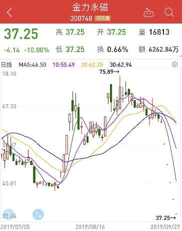 受此音讯影响,当日二级商场资金生生将金力永磁直线拉板,随后9个买卖日,金力永磁还录得8个涨停,股价也从20元一线直奔60元。