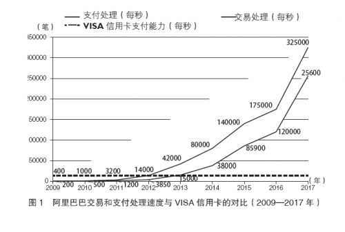 VISA信用卡具有国际上第二强壮的付出处理系统,到2017年8月,其处理才能是全球每秒6.5万笔付出,但这一才能只是是阿里巴巴的1/4(见图1)。