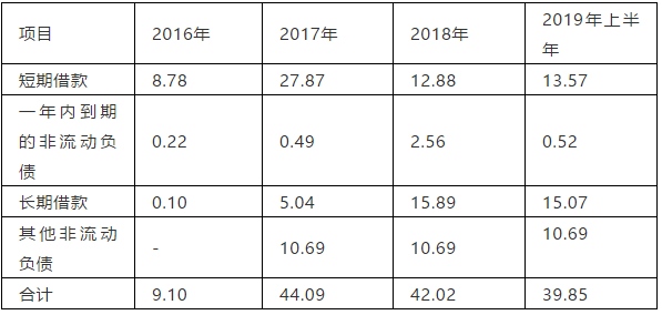 恒康医疗债务融资状况(单位:亿元)
