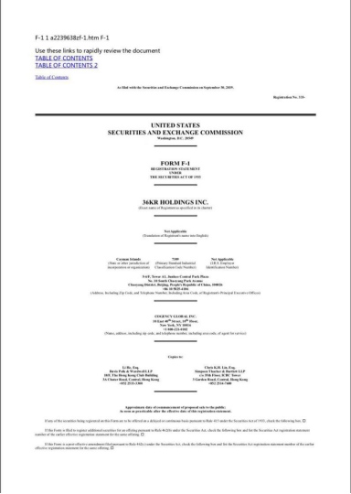 昨日晚间,科技媒体36氪(36Kr Holdings Inc.)向美国纳斯达克交易所递交了IPO请求,依据IPO文件,36氪此次方案征集的资金额度为1亿美元,由瑞士信贷与中金担任联席主承销商。