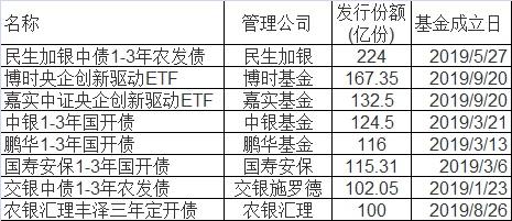 从本年新基金发行来看,也是“爆款”频出。有8只基金发行规划超越百亿,其间发行规划最大的是民生加银中债1-3年农发债,发行规划到达224.0亿份。权益基金中,博时央企立异驱动ETF、嘉实中证央企立异驱动ETF发行规划也较大,别离为167.35亿份、132.50亿份,此外,中银1-3年国开债、鹏华1-3年国开债、国寿安保1-3年国开债、交银中债1-3年农发债、农银汇理丰泽三年定开债等规划也很大。